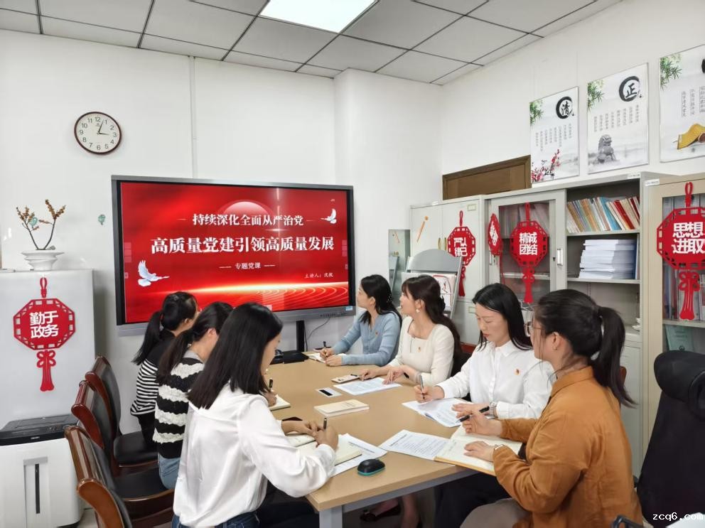 4月10日,支部书记沈忱以《持续深化全面从严治党 高质量党建引领高质量发展》为题,为全体党员讲授党课。沈忱梳理了习近平总书记关于推进全面从严治党的重要论述,带领党员进行理论深学。她结合党的建设理论和学校发展实际,阐述了全面从严治党的重要性和紧迫性,强调要以高质量党建为引领,推动学校各项事业高质量发展。党课内容丰富、案例详实,引发了党员们的深入思考,进一步增强了党员们的责任感和使命感。
